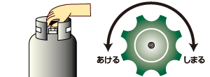 容器バルブを閉め、容器がしっかり固定されているかを確かめて下さい。